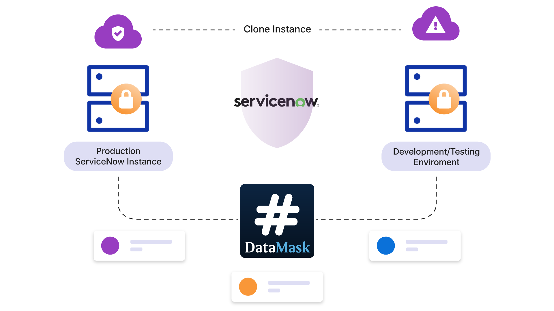 DataMask removes sensitive data from ServiceNow non-production environments through rule-based masking and purging.
